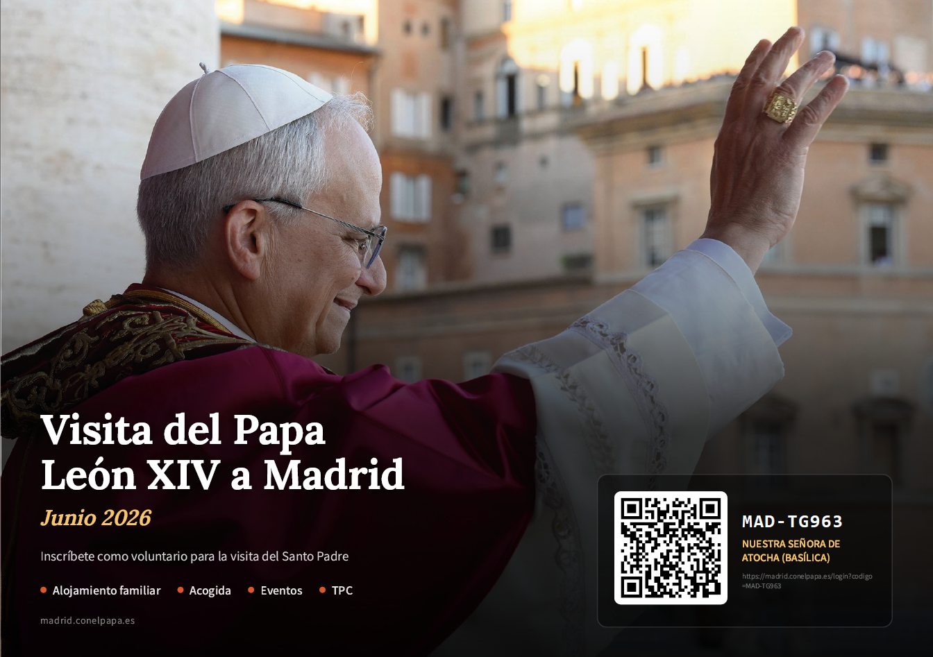 Ya se puede realizar la inscripción como voluntario para acoger en sus casas ante la próxima visita del Papa León XIV a Madrid el próximo mes de Junio 2026.